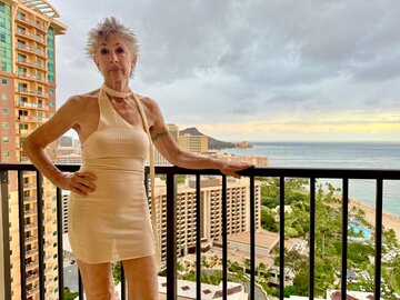 At my Waikiki hotel room, getting ready to meet a gentleman caller for some playtime.