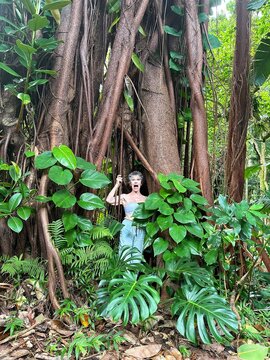 I found the sausage tree at the botanical gardens and had fun with the 30 pound, 3 foot long fruit